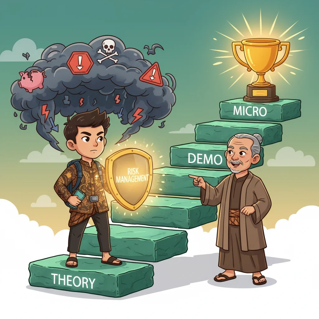 Tahukah kamu bahwa 74% trader ritel forex kehilangan uang mereka dalam 12 bulan pertama? Bukan karena pasar itu kejam, tapi karena mereka loncat ke trading real sebelum benar-benar siap.