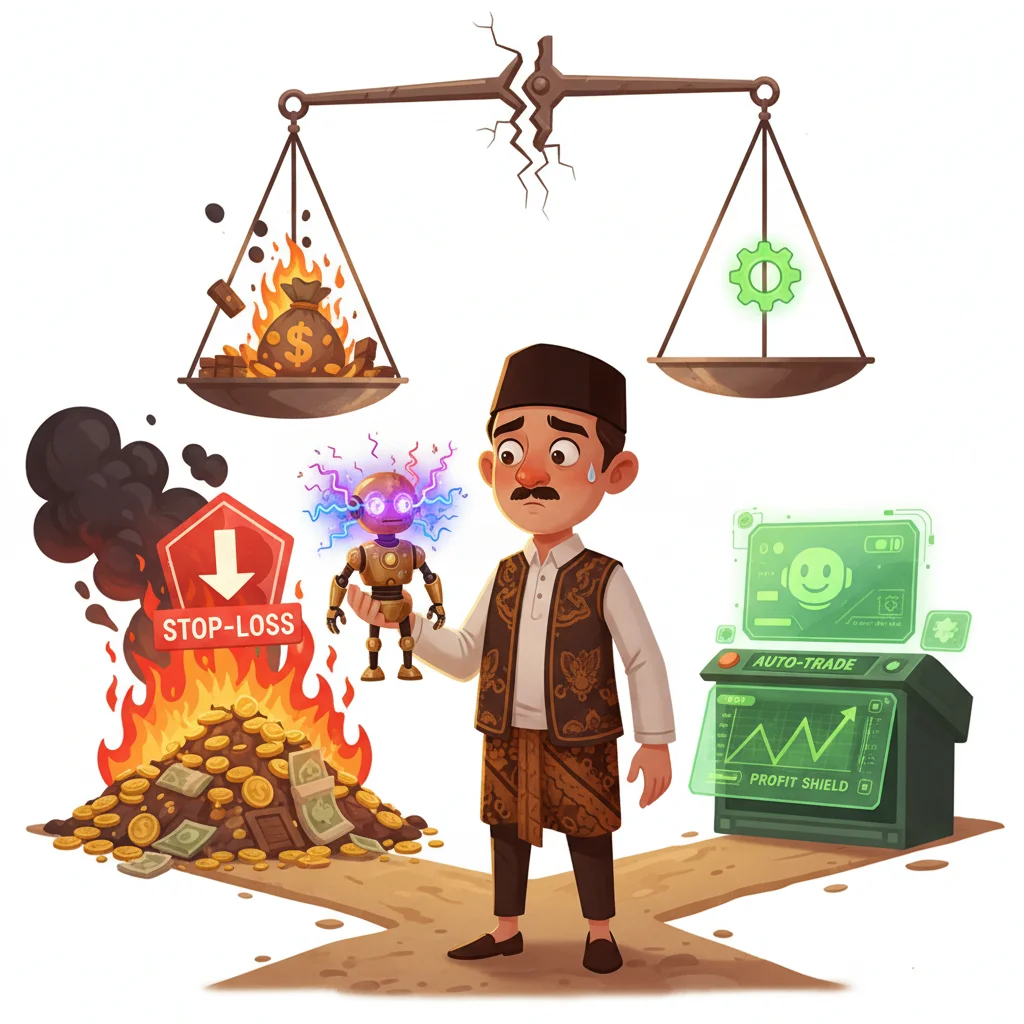 Tapi EA juga punya kelemahan fatal yang jarang dibahas penjualnya: EA hanya bisa melakukan apa yang sudah diprogramkan. Kalau kondisi pasar berubah, misalnya dari trending ke ranging, EA yang didesain untuk trending market akan terus rugi sampai kamu matikan secara manual.