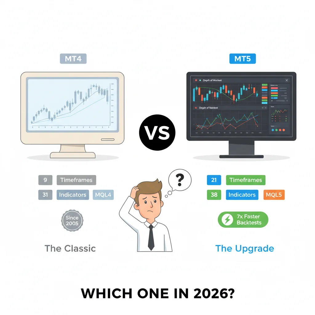 トレーダーに「どちらが良いか」と尋ねられたとき、私は彼らが間違った質問をしていると答えます。MT4が劣っているわけではなく、より狭い目的に特化して作られているだけです。もしあなたがEUR/USDや他のいくつかのFXペアを裁量システムで取引しているなら、MT4は2026年においてもその役割を非常にうまく果たします。もしあなたが株式CFDと金、FXを同じ口座で混ぜて取引しているなら、MT5が唯一の賢明な選択です。